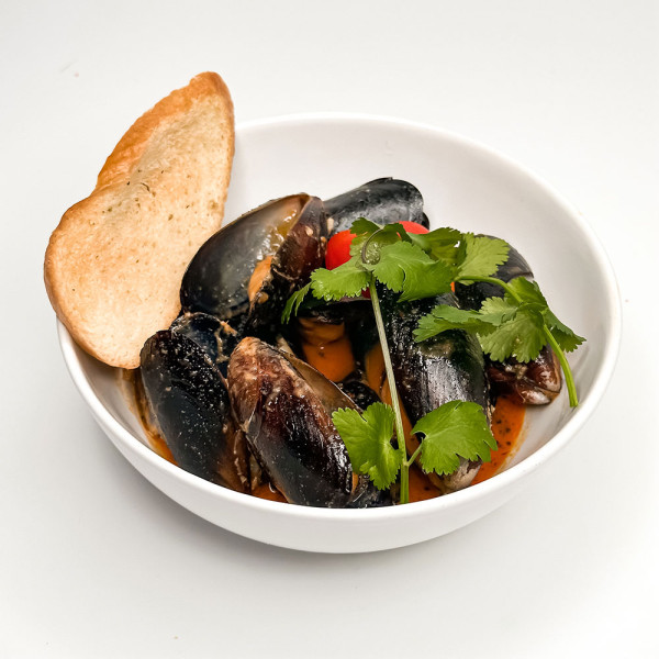 Черноморские мидии, соус том-ям, кокосовое молоко, сок лайма, зелень 320 грамм