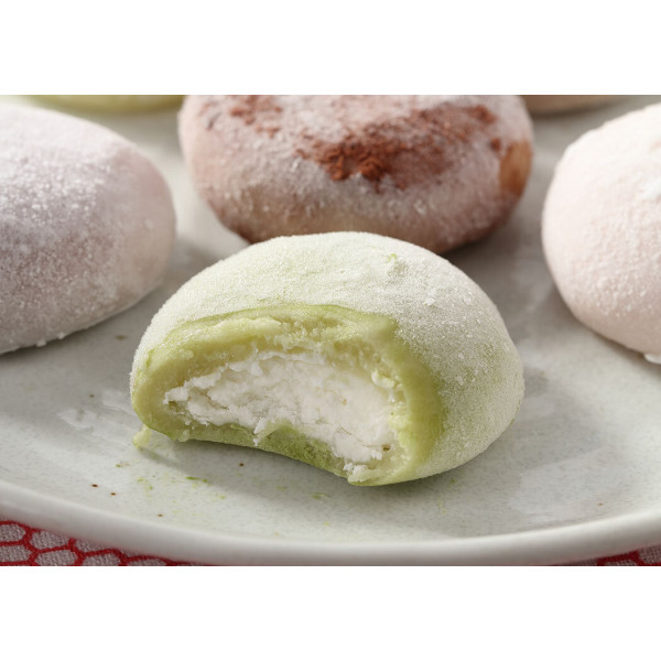 Десерт японский с начинкой из творожного сыра и фруктового пюре в рисовом тесте