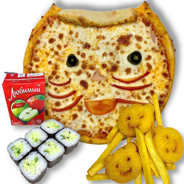 Микс из фри 100 грамм, миниролл с огурцом, сок 200 мл + раскраска