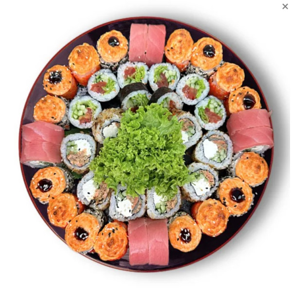 Ассорти из популярных холодных и запеченных роллов- филадельфии в тунце, бонито, ясай, Запеченный краб, Запеченный с копченым цыпленком. 1,4 кг 40 штук по акционной цене