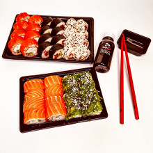 Сет ассорти из более чем килограмма роллов для компании из 3-5 человек.